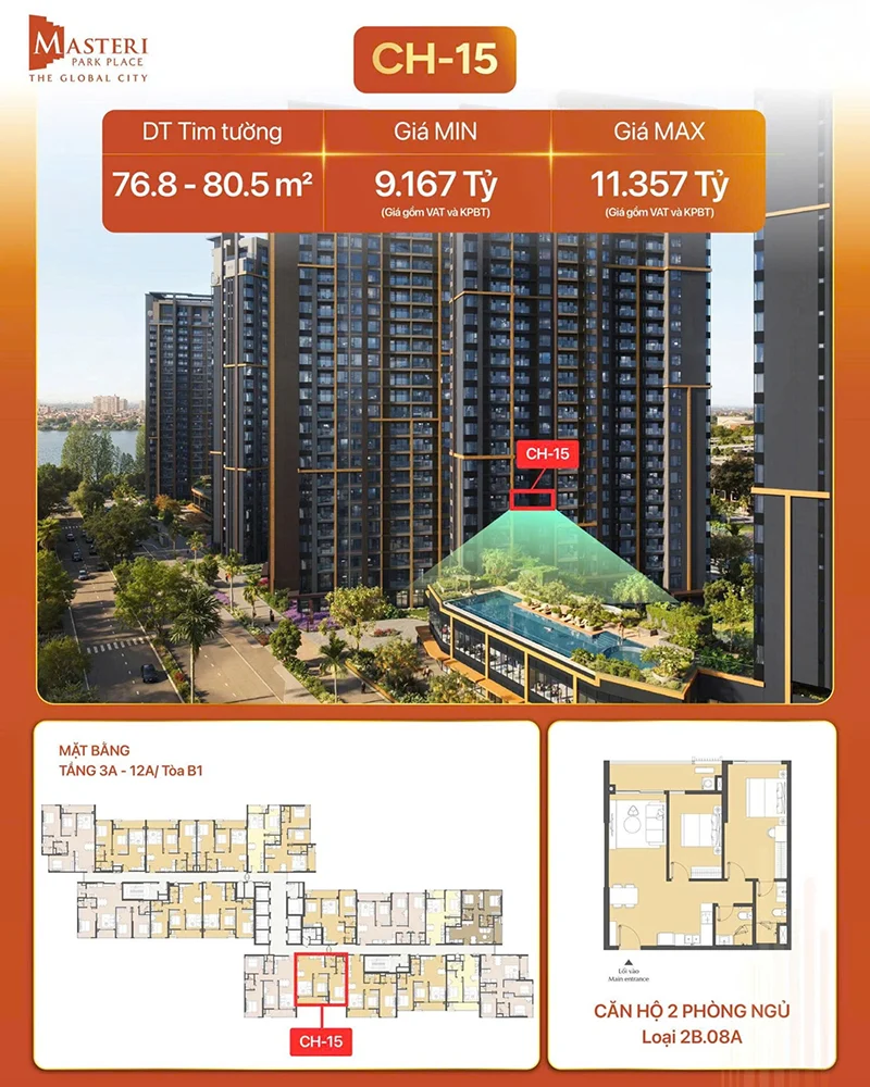 Bạn có thể xem bảng giá chi tiết hơn qua Giá căn hộ 2PN Masteri Park Place theo từng loại view để có cái nhìn cụ thể hơn về mức đầu tư theo từng vị trí căn.